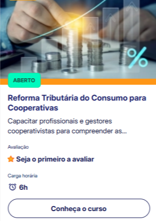 O curso aborda a parte geral da reforma, com foco na tributação sobre o consumo e apresenta orientações sobre como as cooperativas podem se adaptar ao novo regime. A trilha